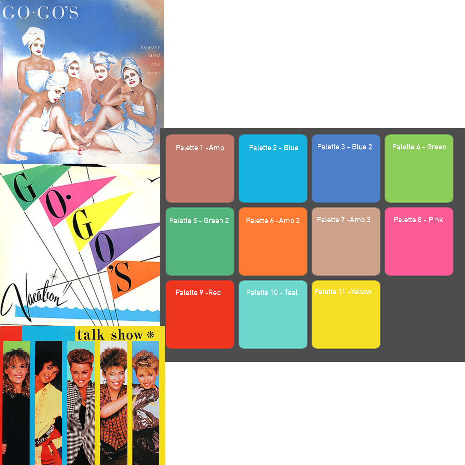The lighting design for this production took inspiration from 1970s and 80s rock shows including, but not limited to, The Go-Go’s as well as the liminality of chart music shows like the UK’s Top of the Pops, which often placed the band performing on a abstract stage shape and complimented this with geometric patterns, beam art, and candy colors which, for this production, were references from The Go-Go’s album cover designs.