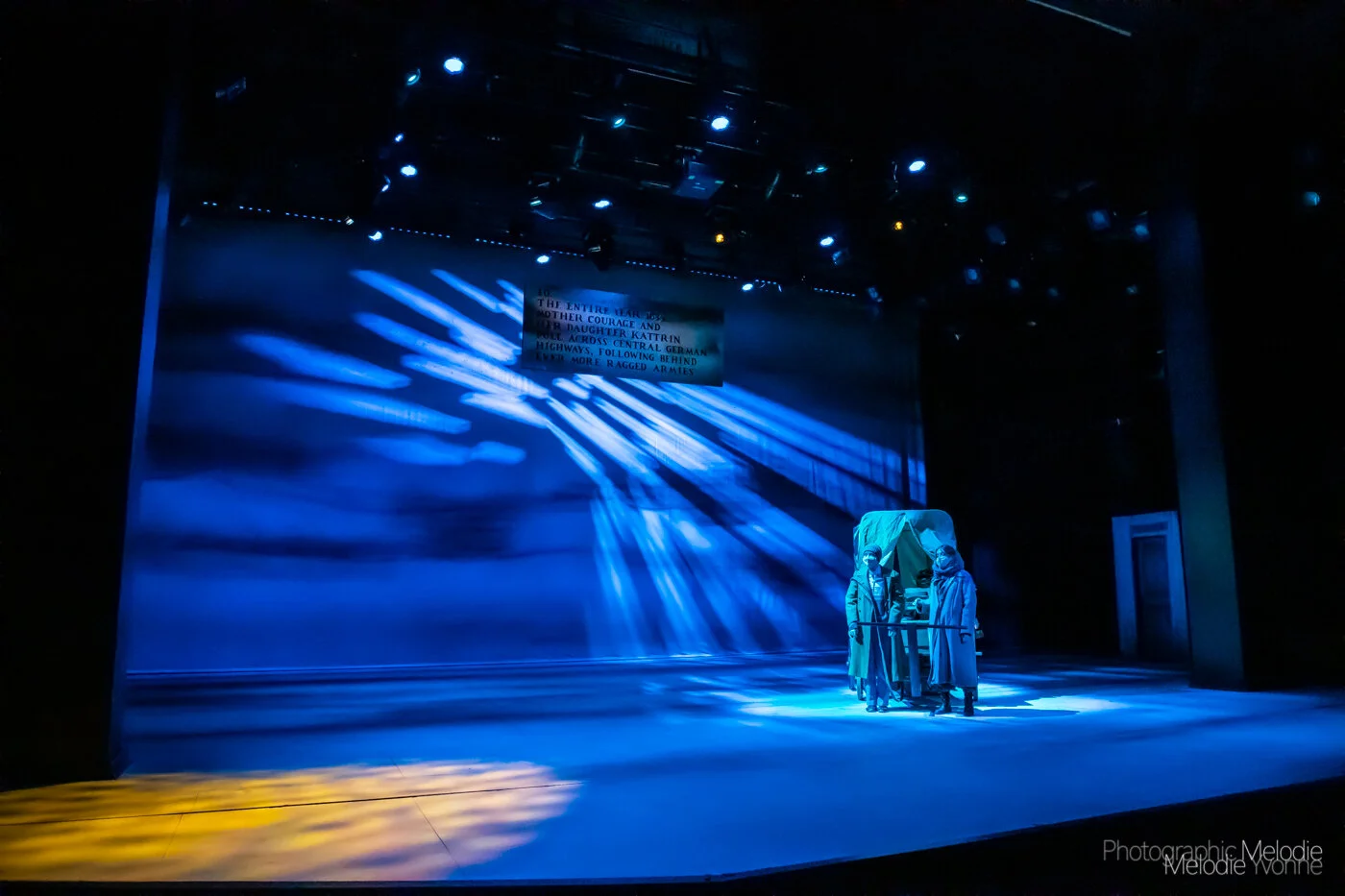 Stylistically, the design will reflect both Brechtian modes of lighting which seeks unambiguous reveal of the actions being depicted, a sense of endless possibility and neutrality which will be contrasted and punctuated with gashes of color, fractured lines of light, splashes of motion, and various moments where the "magic of contemporary light" is displayed and one can see in ways that are aesthetically distinct, but are inkeeping with the philosophy of distancing as well as the specific journey through periods depicted here in Mother Courage.